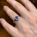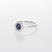 Anello in Oro Bianco 18kt con Zaffiro Blu Ovale e Contorno di Diamanti - Richiedi Informazioni aggiuntive