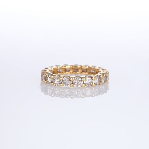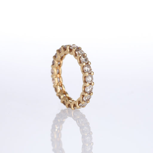 Mostra dettagli completiQuesto incantevole anello eternity presenta un delicato motivo floreale realizzato in oro giallo 18k. Ogni fiore è impreziosito da zaffiri gialli l...