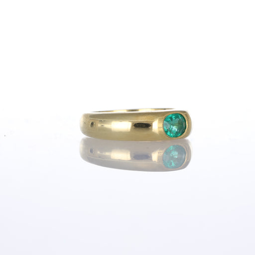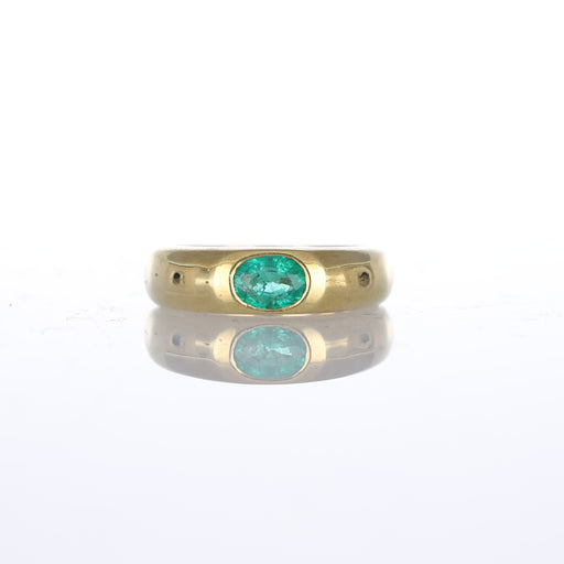 Mostra dettagli completiUn elegante anello a fascia in oro giallo 18k, impreziosito da uno splendido smeraldo taglio ovale da 0,40 carati al centro. Il design minimalista ...