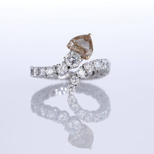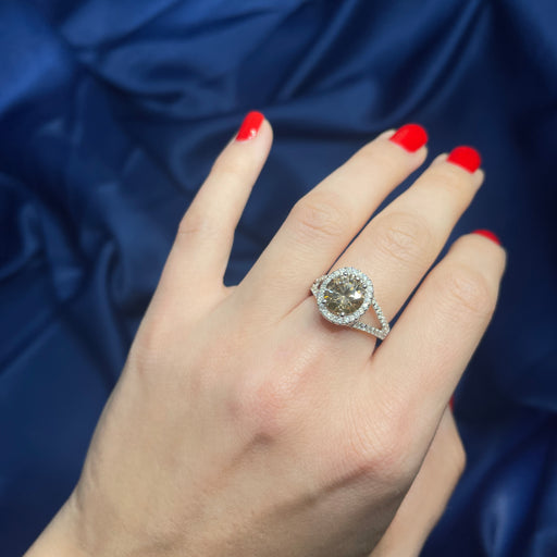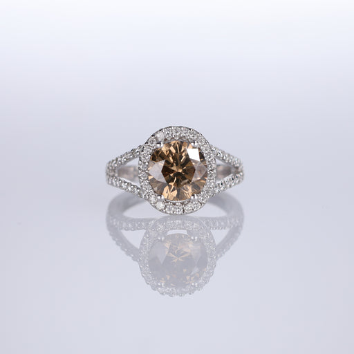 Mostra dettagli completiRaffinato anello solitario in oro bianco 18K con diamante marrone naturale da 2,33 carati, taglio ovale brillante. La calda tonalità della pietra c...