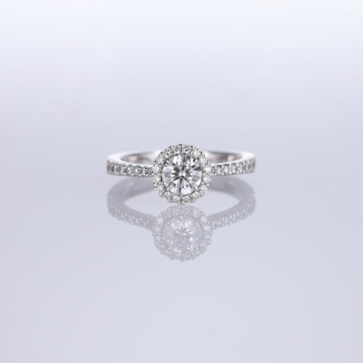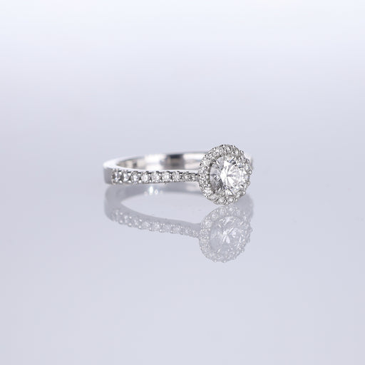 Mostra dettagli completiSolitario classico e raffinato in oro bianco 18K con diamante bianco naturale centrale da 0,51 carati. La sua brillantezza è esaltata da un pavé di...
