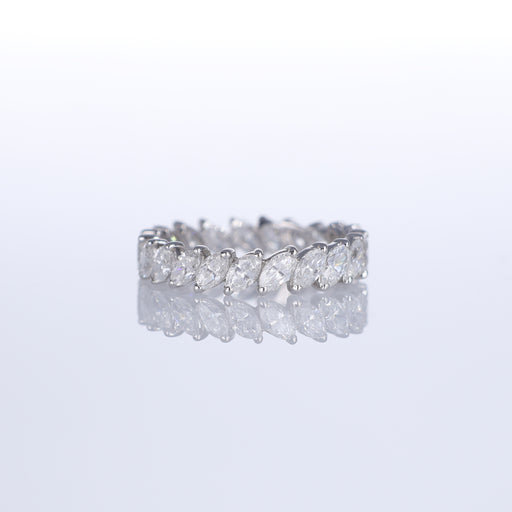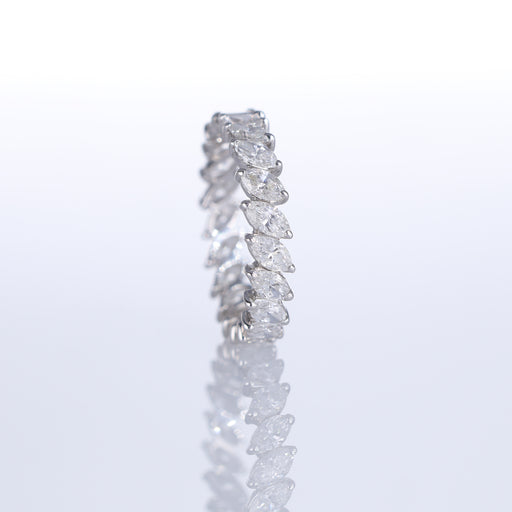 Mostra dettagli completiRaffinato anello riviera in stile eternity, realizzato in oro bianco 18K e completamente incastonato con diamanti bianchi naturali taglio marquise ...