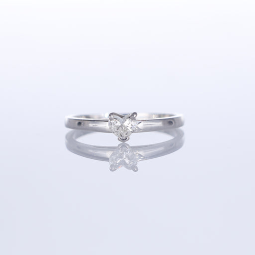 Mostra dettagli completiDelicato e romantico, questo anello solitario in oro bianco 18K è impreziosito da un diamante bianco naturale taglio cuore da 0,26 carati. La monta...