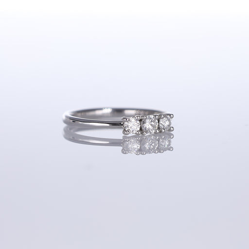 Mostra dettagli completiElegante anello trilogy in oro bianco 18K con tre diamanti naturali taglio brillante, per un peso complessivo di 0,88 carati. Simbolo del passato, ...