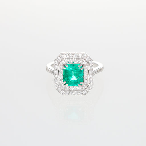 Mostra dettagli completiUn anello di grande eleganza, realizzato in oro bianco 18 kt, con al centro uno smeraldo naturale da 1,39 carati, taglio rettangolare, dalle misure...