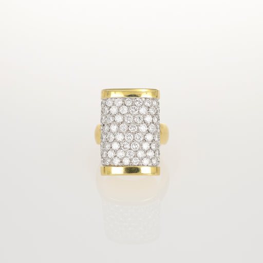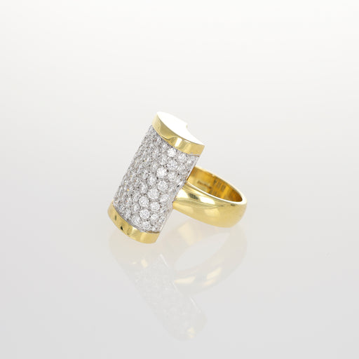 Mostra dettagli completiUn anello a fascia dal forte impatto visivo, realizzato in oro giallo 18 kt e interamente rivestito da un pavé di diamanti naturali bianchi taglio ...