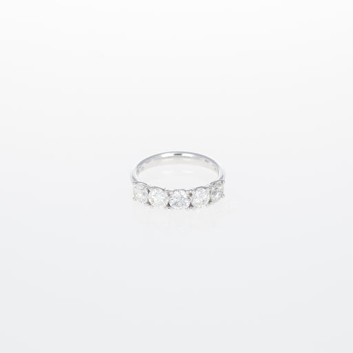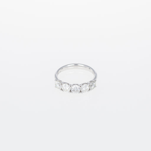 Mostra dettagli completiClassico anello riviera in oro bianco 18K con cinque diamanti naturali taglio brillante, incastonati in una doppia montatura: base channel con grif...