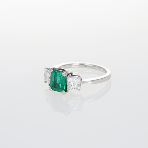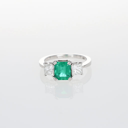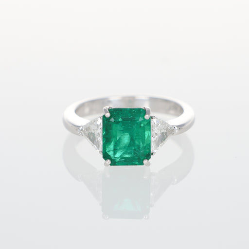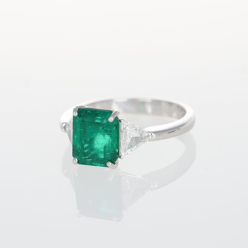 Mostra dettagli completiUn anello di grande eleganza, realizzato in oro bianco 18 kt con smeraldo naturale centrale da 2,35 carati. Ai lati, due diamanti naturali bianchi ...