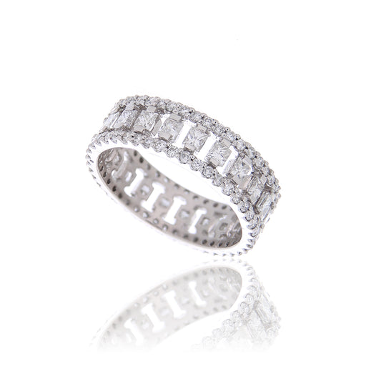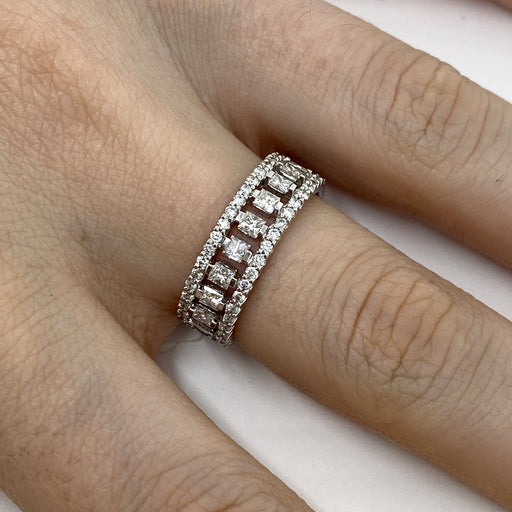 Anello Riviere realizzato in oro bianco 18kt con diamanti naturali taglio brillante e taglio baguette per ct.2.01