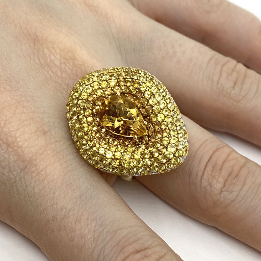 Mostra dettagli completiAnello Calla realizzato in oro giallo 18kt con citrino taglio goccia per ct.2.71 e zaffiri naturali gialli per ct.4.22 e diamanti naturali bianchi ...