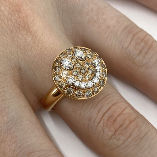 Anello realizzato in oro rosa 18 kt con faccina sorridente in pavé di diamanti naturali brown taglio brillante per ct.1.20 e diamanti bianchi tagli...