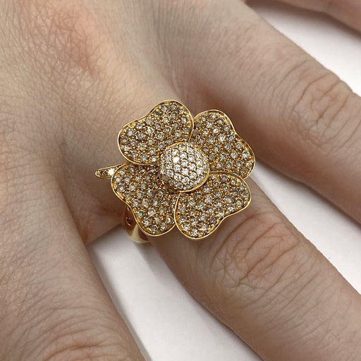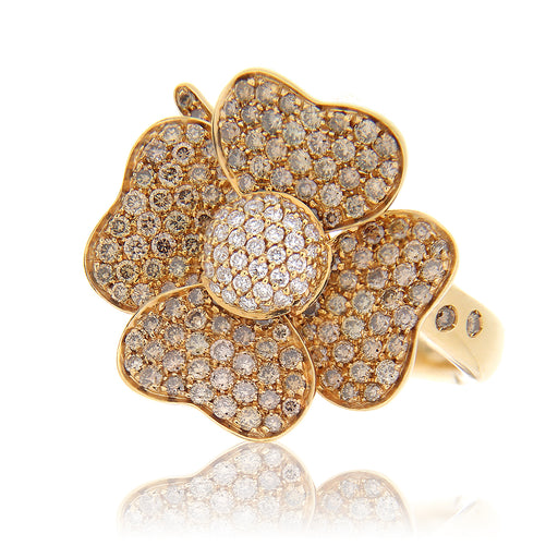 Anello a fiori realizzato in oro rosa con pavé in diamanti naturali brown e bianchi taglio brillante per ct.1.46