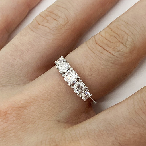 Mostra dettagli completiAnello demiriviere realizzato in oro bianco 18kt con diamanti naturali bianchi taglio brillante per ct.0,96