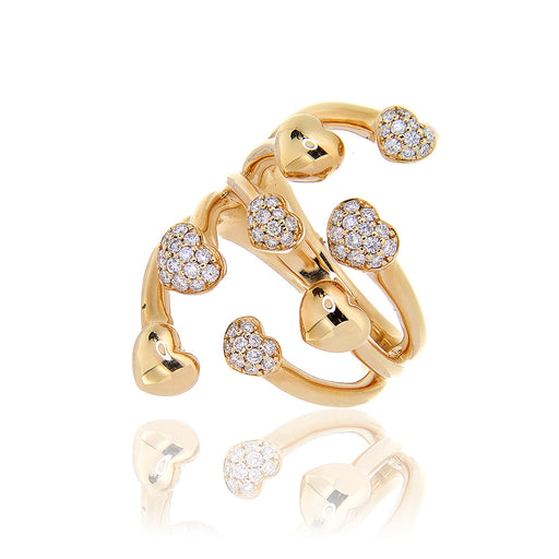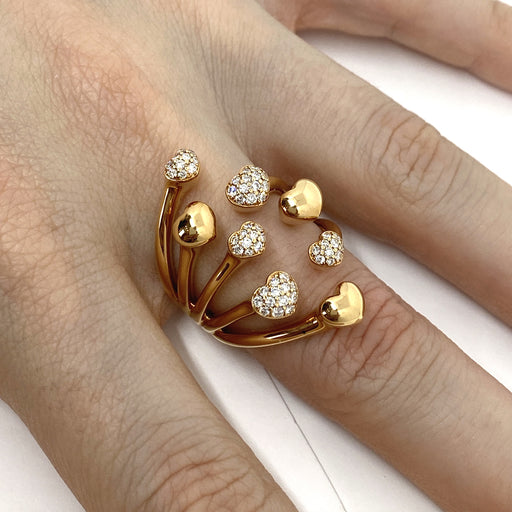 Anello a fascia realizzato in oro rosa 18 kt con cuori con pavé di diamanti bianchi naturali taglio brillante per ct.0,46