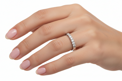 Mostra dettagli completiRaffinato anello fascia in oro bianco 18kt con diamanti naturali taglio brillante per un totale di 0,32 carati. Un gioiello versatile e luminoso, p...