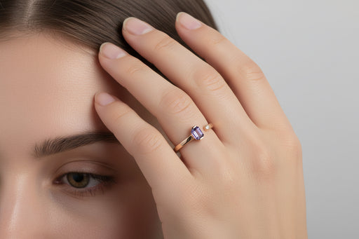 Mostra dettagli completiUn solitario dal carattere deciso e raffinato, realizzato in oro bianco 18 kt con diamante centrale taglio rettangolare da 1,01 carati (colore G, p...