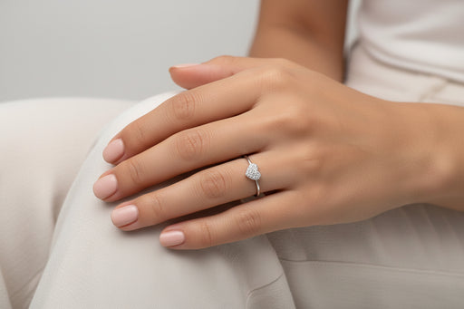 Mostra dettagli completiAnello realizzato in oro bianco 18 kt con cuore centrale decorato da pois di diamanti naturali bianchi per un totale di ct. 0,06. Un design delicat...