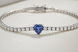 Bracciale realizzato in oro bianco 18 kt con diamanti naturali bianchi taglio brillante per ct.1.14 e zaffiro blu naturale taglio cuore per ct.1.10