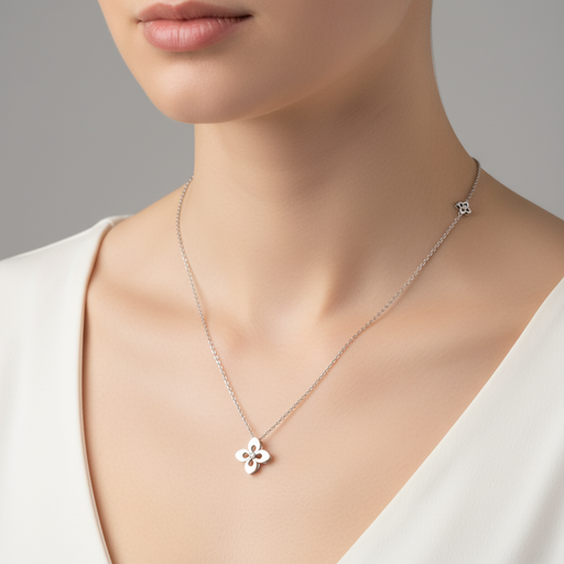 Mostra dettagli completiDelicato e femminile, questo pendente in oro bianco 18 carati presenta una composizione incantevole con un fiore grande e uno piccolo, valorizzati ...