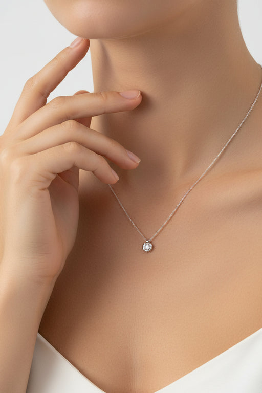 Mostra dettagli completiElegante ciondolo realizzato in oro bianco 18kt, caratterizzato da un singolo diamante naturale di 0,40 carati, incastonato in una raffinata montat...