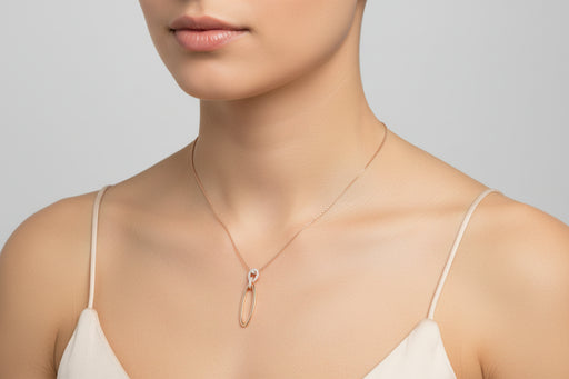 Mostra dettagli completiUn equilibrio delicato tra eleganza e modernità, questa collana in oro rosa 18 carati presenta un pendente impreziosito da diamanti naturali bianch...