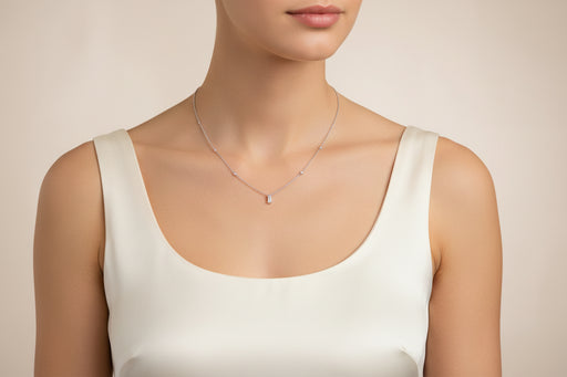 Mostra dettagli completiElegante e raffinata, questa collana in oro bianco 18 carati presenta un pendente dal design sobrio che unisce due tagli di diamante per un effetto...