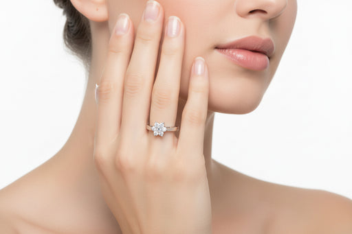 Mostra dettagli completiUn anello raffinato e delicato, realizzato in oro bianco 18 kt e impreziosito da un piccolo fiore composto da diamanti naturali bianchi taglio bril...