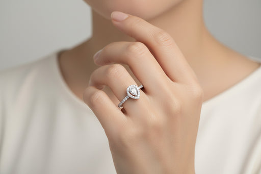 Mostra dettagli completiUn anello elegante e luminoso, realizzato in oro bianco 18 kt, con diamante naturale bianco taglio goccia da 0,26 carati al centro, incorniciato da...