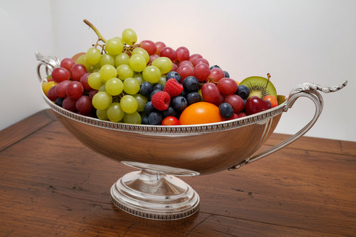 Mostra dettagli completiElegante jatte ovale realizzata in argento titolo 800, impreziosita da due manici lavorati con motivi a foglia grande in stile San Marco. Il...