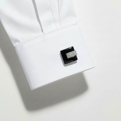 Gemelli in oro bianco 18 kt squadranti in onice e barretta in pavé di diamanti naturali bianchi chiusura americana