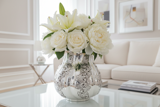 Mostra dettagli completiElegante vaso sagomato realizzato in argento 800, opera dell'artigiano Trezzi in Italia. Il corpo presenta una ricca decorazione a sbalzo con motiv...