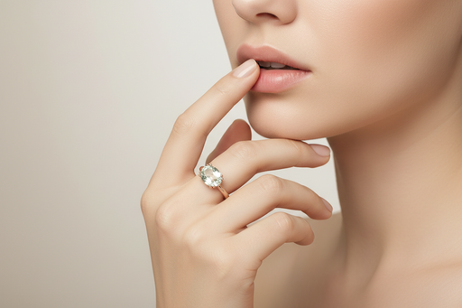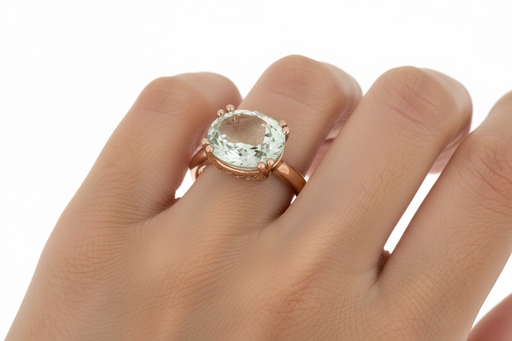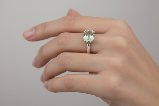 Anello realizzato in oro bianco 9 kt con prasiolite ovale naturale