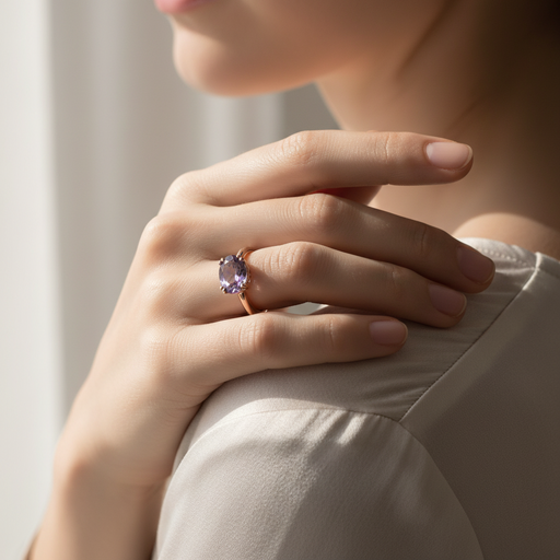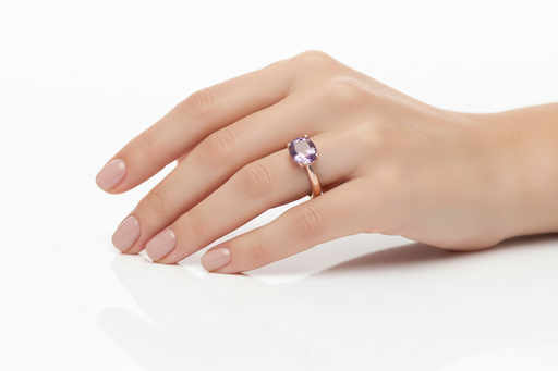 Anello realizzato in oro rosa 9 kt con ametista taglio ovale