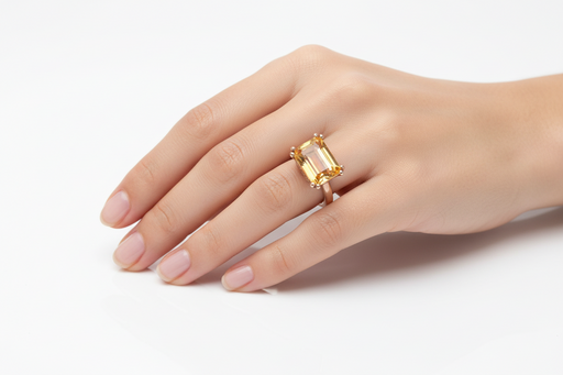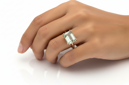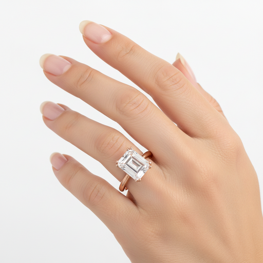 Anello realizzato in oro rosa 9 kt con cristallo di ricca taglio smeraldo