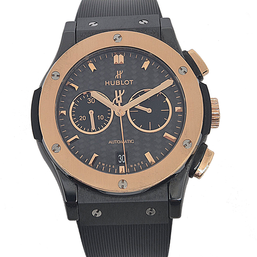 Orologio Hublot Big Bang cronografo cassa in oro rosa 44 mm lunetta in ceramica nera quadrante colore nero in fibra di carbonio con indici. Vetro z...