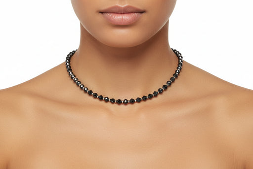 Mostra dettagli completiGirocollo elegante realizzato con diamanti neri taglio sfaccettato, intervallati da rondelle in oro bianco che donano ritmo e luminosità alla compo...