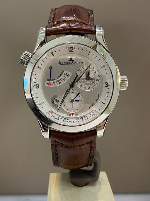 Mostra dettagli completiOrologio Jaeger Le Coultre Geographic World Timer Ref. 147.8.57.S JLC Caliber 929/3 cassa 40 mm di diametro tre corpi, lucidati, anse concave, fon...