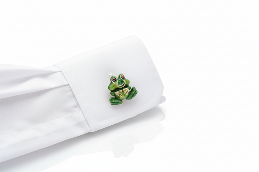 Gemelli tema rana realizzati in oro giallo 18 kt e smalto