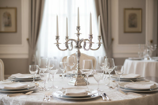 Mostra dettagli completiImponente candeliere realizzato in argento titolo 925, ispirato al gusto barocco del Settecento. La struttura a sette bracci è arricchita da elegan...