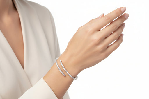 Mostra dettagli completiAnello riviere Glove elastico realizzato in oro bianco 18 kt con diamanti naturali bianchi taglio brillante per ct .0,90 GVS1