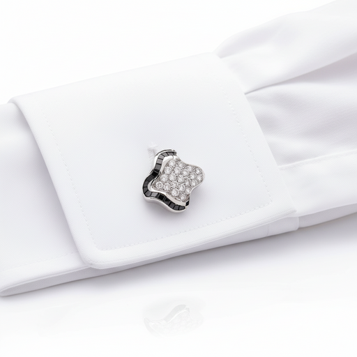Mostra dettagli completiGemelli doppi in oro bianco 18 kt squadrati con onice taglio tondo e diamanti naturali bianchi per totale ct 0,56