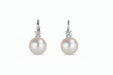 Eleganti orecchini pendenti in oro bianco 18kt con perle bianche luminose sospese da raffinate monachelle. La parte superiore è decorata da diamanti naturali taglio brillante per un totale di 0,44 carati, donando brillantezza e raffinatezza a questo design senza tempo, perfetto per look formali o per l’eleganza quotidiana.