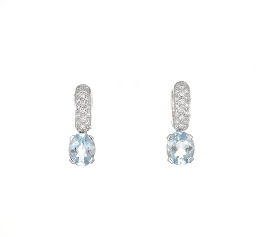 Mostra dettagli completiOrecchini pendenti realizzati in oro bianco 18 kt, con eleganti acquamarine naturali taglio ovale per un totale di ct. 3,13 e diamanti naturali bia...