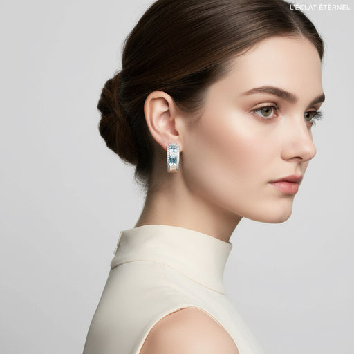 Mostra dettagli completiOrecchini a semicerchio realizzati in oro bianco 18 kt, impreziositi da acquamarine naturali dal taglio rettangolare per un totale di ct. 3,93. A i...