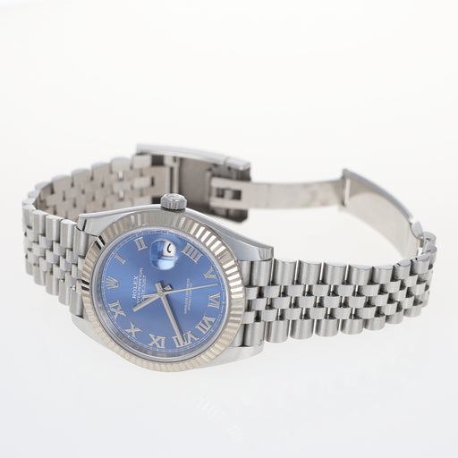 Rolex Datejust II referenza 126334 cassa 41 mm di diametro in acciao con quadrante azzurro finitura soliel con ore romane datario ore tre vetro zaf...