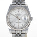 Rolex Datejust 36 mm cassa in acciaio lunetta zigrinata oro bianco 18 kt con quadrante silver indici vetro zaffiro datario ore tre bracciale jubilee movimento automatico.