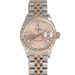 Rolex Datejust referenza 279171 diametro 28mm cassa in acciaio e oro rosa lunetta zigrinata quadrante rosé con indici in diamanti e numero IX in oro rosa con otto diamanti bracciale jubilé in acciaio e oro rosa chiusura a scomparsa. Vetro zaffiro e movimento automatico.