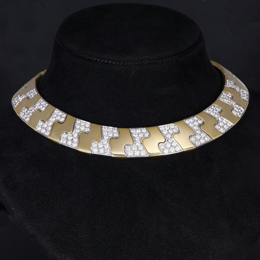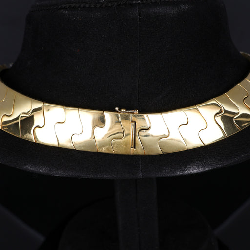 Mostra dettagli completiUn sorprendente choker realizzato in oro giallo 18K, caratterizzato da un intricato design a forma di "S" adornato con diamanti bianchi incastonati...