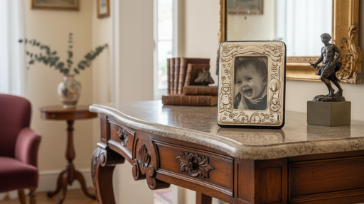 Cornice realizzata in argento 925 con incisioni fantasia ,retro in velluto blu .