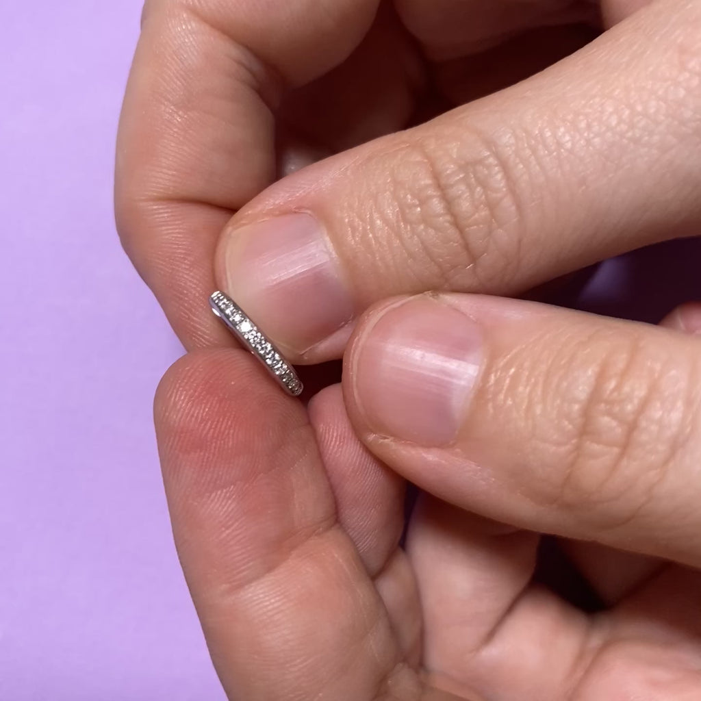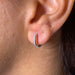 Piccoli orecchini a cerchio realizzati in oro bianco 18 kt, impreziositi da diamanti naturali bianchi taglio brillante per un tocco di luce delicato e discreto. Perfetti per l’uso quotidiano o per abbinamenti eleganti.